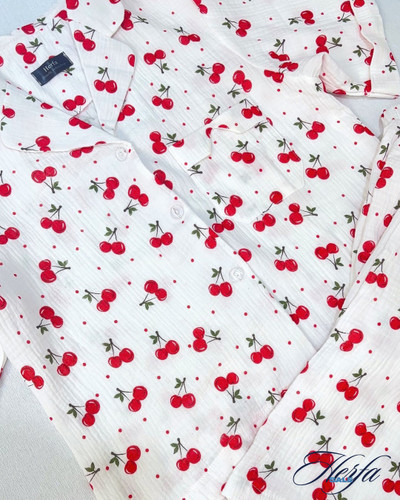 039 - ست بلوز و شلوار موسلین آلبالو | Cherry Muslin Set