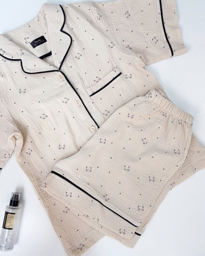 047 - ست بلوز آستین کوتاه و شلوارک موسلین زنانه مدل Cat