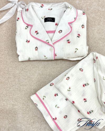 ۰۲۶ - ست بلوز آستین کوتاه و شلوار موسلین مدل heart love