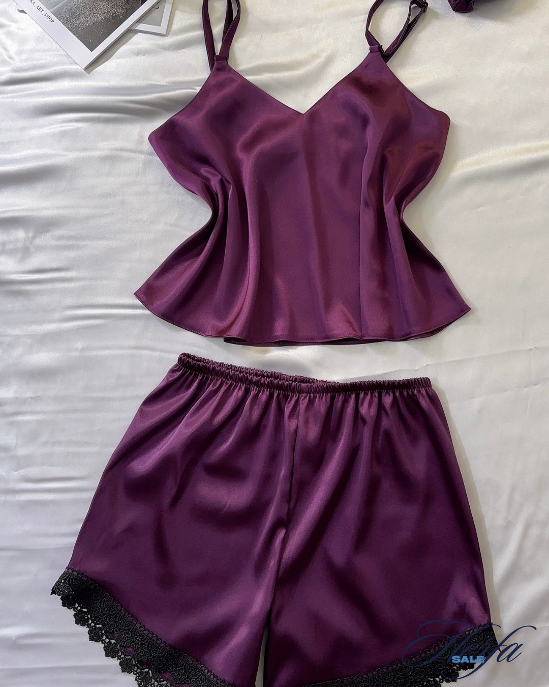 "001 - ست تاپ و شلوارک ساتن بنفش (Purple)"