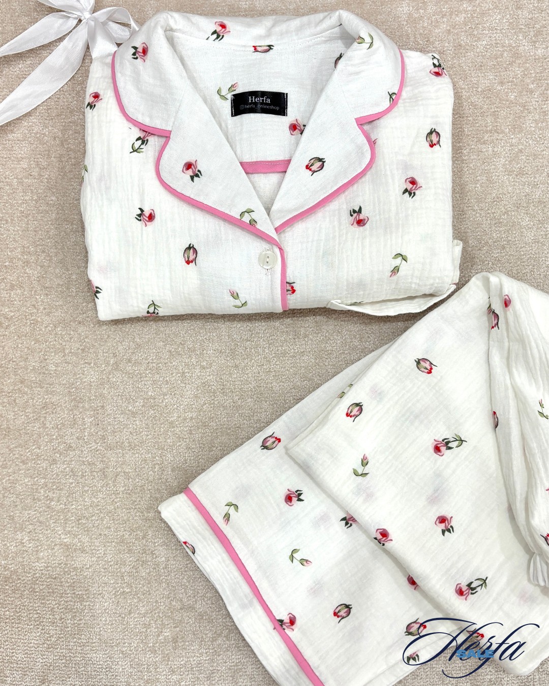 024- ست آستین کوتاه و شلوار زنانه موسلین سفید مدل frozen