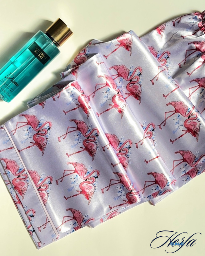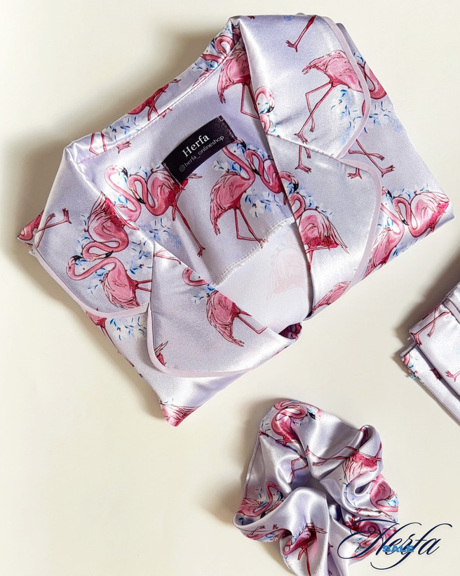 ست بلوز و شلوار ساتن طرح فلامینگو، انتخابی نرم، خنک و بسیار شیک برای استایل خواب یا راحتی منزل. جنس ساتن ابریشم با دوخت مغزیدوزی شده در لبهها، همزمان حس زیبایی و لطافت رو به شما هدیه میده. چاپ فلامینگو روی پارچه باعث میشه این ست خاصتر از همیشه باشه.