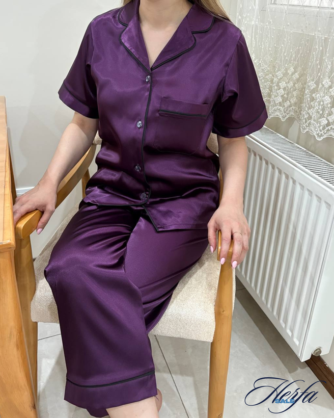 019 - ست بلوز آستین کوتاه و شلوار ساتن purple