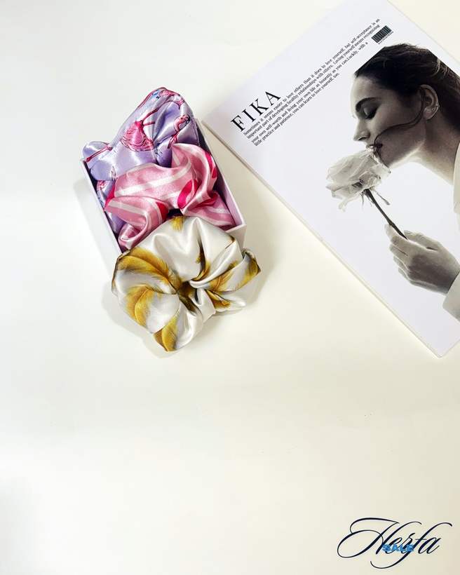 اسکرانچیهای ساتن طرحدار، با طرحهای جذاب بوسه،پر طلایی ، فلامینگو ( Golden Feather، Kiss و Flamingo)، علاوه بر زیبایی چشمگیر، از موهای شما به خوبی مراقبت میکنند. این کش موهای نرم و سبک، مانع از کشیدگی، گره خوردن یا آسیب به مو میشوند و برای استفاده روزانه یا هنگام خواب ایدهآل هستند.