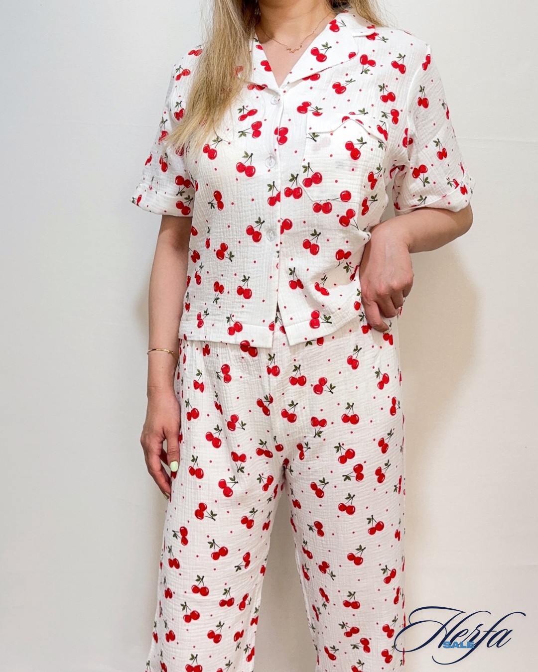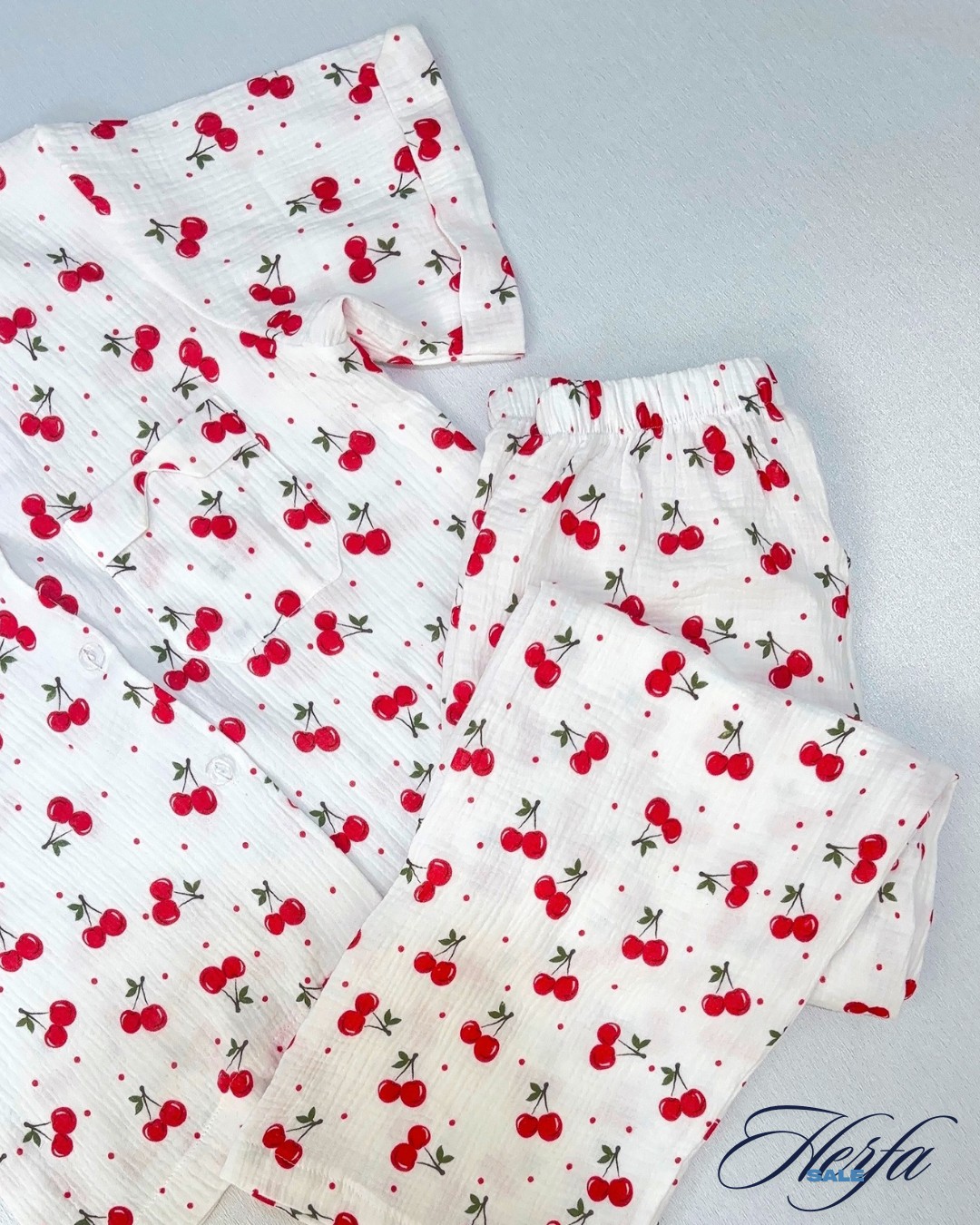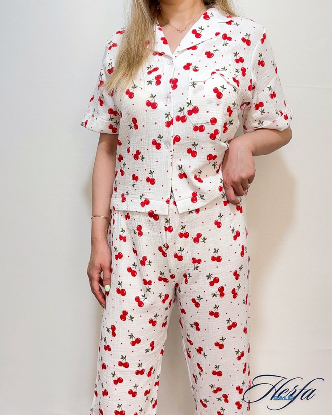 039 - ست بلوز و شلوار موسلین آلبالو | Cherry Muslin Set