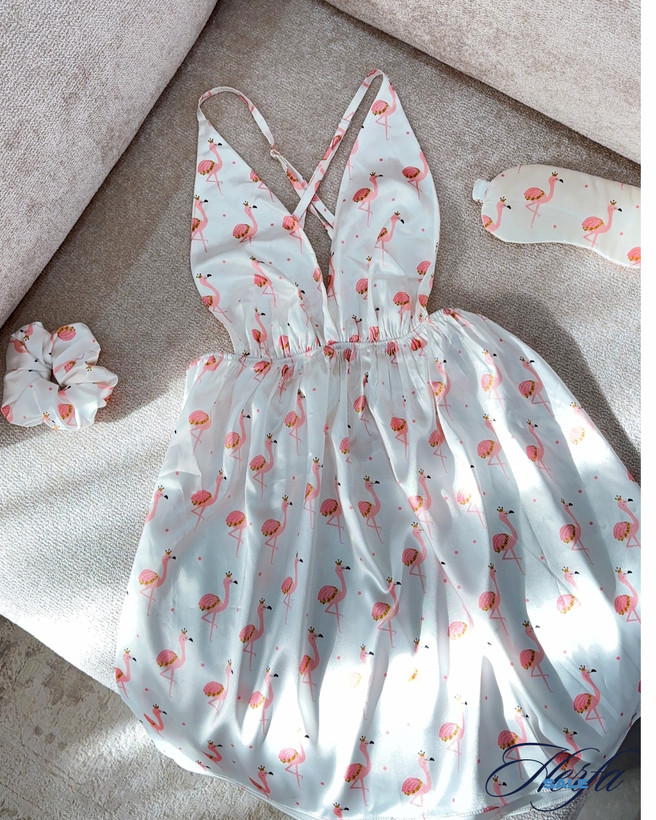 040 - پیراهن ساتن فلامینگو " دلبر " | Darling flamingo