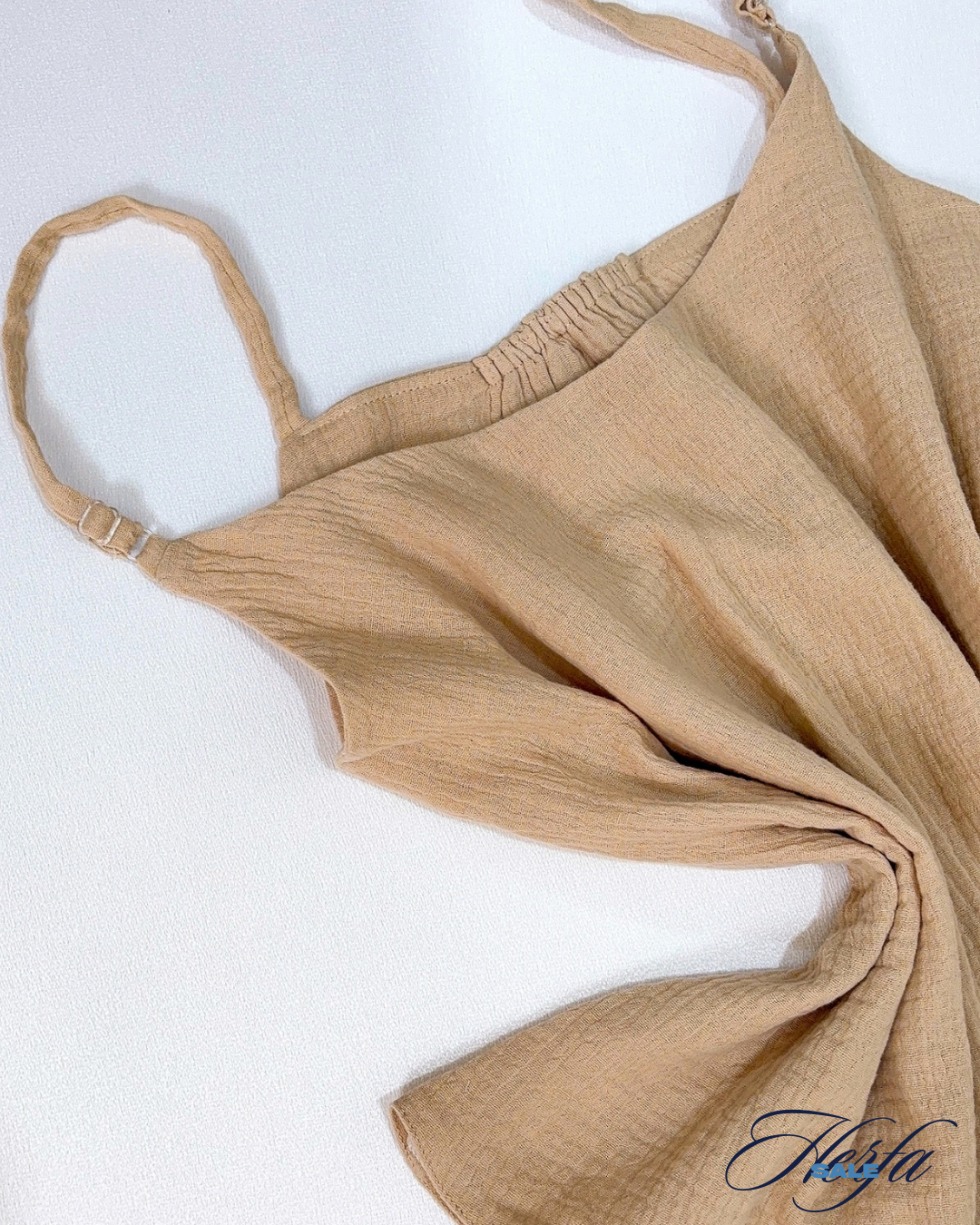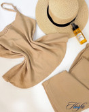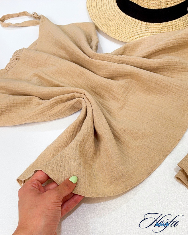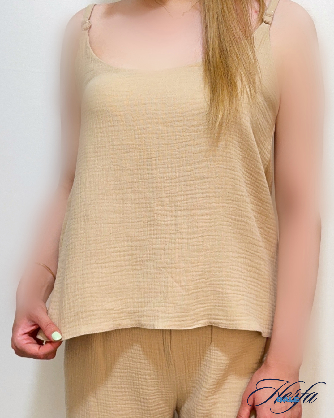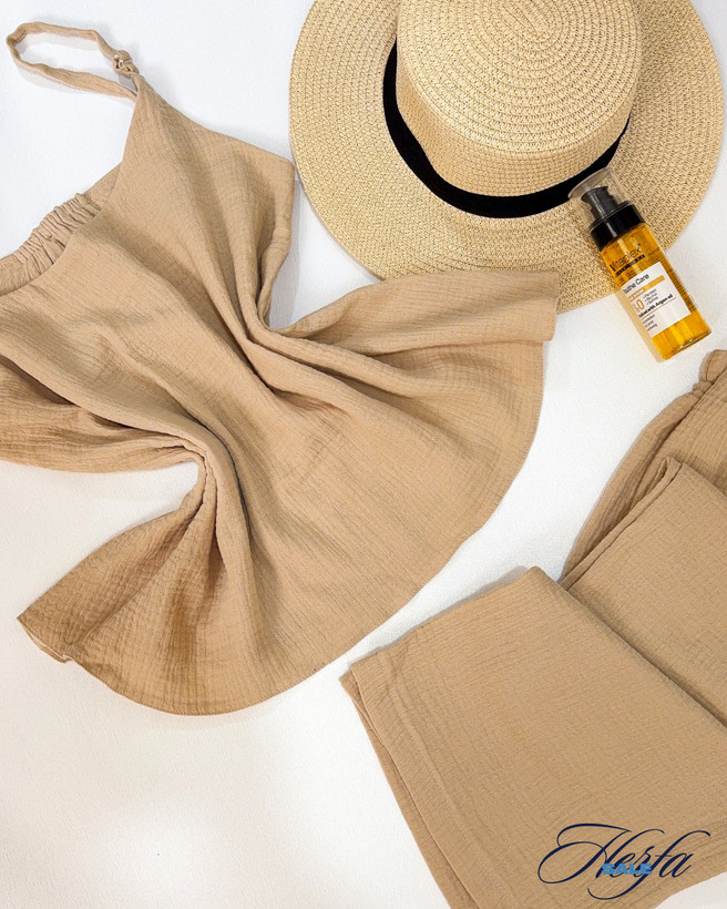 تاپ بندی و شلوار موسلین کرم – مدل Soline | ست راحتی زنانه سبک و خنک