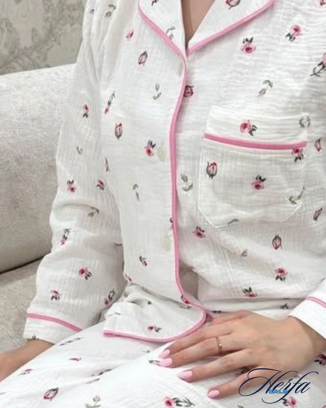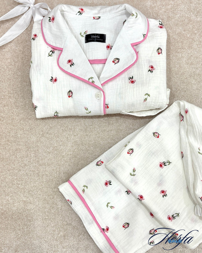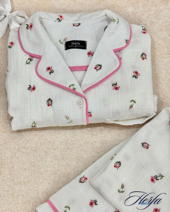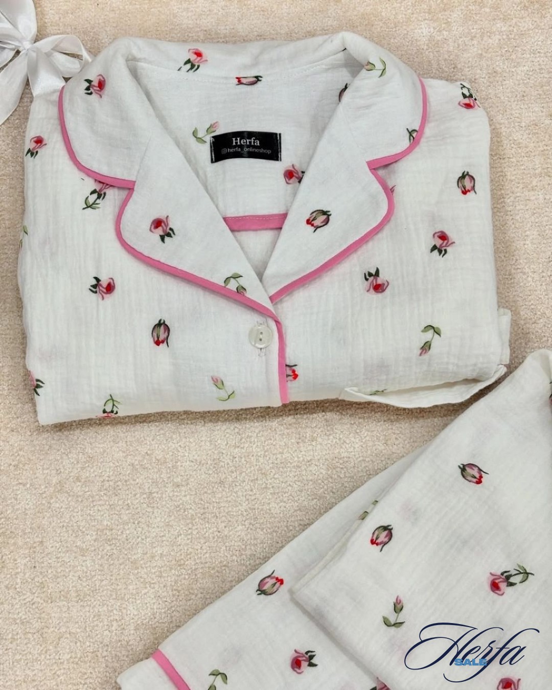 ست خواب فلاور رز با طراحی خاص و لطیف، انتخابی عالی برای بانوانیست که به استایل خوابشون اهمیت میدن. پارچهی موسلین لطیف و خنک این ست، مناسب فصل گرماست و حس راحتی و آرامش در خواب رو تضمین میکنه. با طرح گلهای ریز و دیزاین یقه با خط صورتی ملایم، هم سادهست هم شیک.